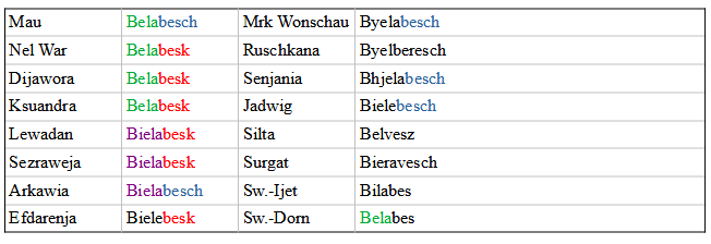 Schönes Beispiel ist dafür Belabesch. Die Institution ist so alt, dass ihr Name sich über die Jahrhunderte zusammen mit der lokalen Sprache wandelte. Ursprungswort war das alt-morakische Byelberesz (bzw. Bielberesch auf Neu-Morai). Für gewöhnlich folgen solche Unterschiede nicht strikt den Prowidenzgrenzen (bzw. sprachliche Tendenzen erstrecken sich über diese Grenzen hinaus).
